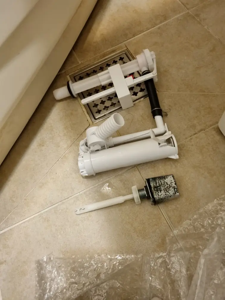 현장에 도착해서 변기 탱크 뚜껑을 열어보니 역시 물이 계속 흘러내리고 있었습니다. 급수 밸브와 플러시 밸브를 확인한 결과 여러 부품이 노후화되어 제 기능을 못 하는 상태였습니다. 부분 수리보다는 주요 부품을 전체 교체하는 것이 좋겠다고 판단했습니다.